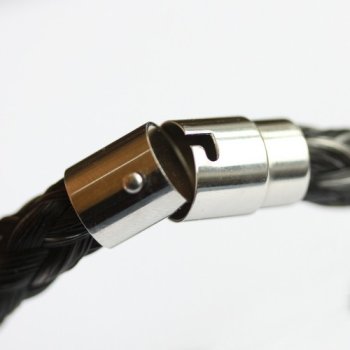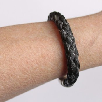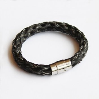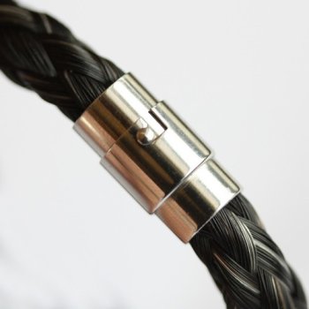 Rondgevlochten armband van 8 strengen haarDiameter ca. 1 cm, geschikt vanaf pols 15,5 cmRVS magneetsluiting met beveiliging - Benodige haarlengte minimaal 40 cm