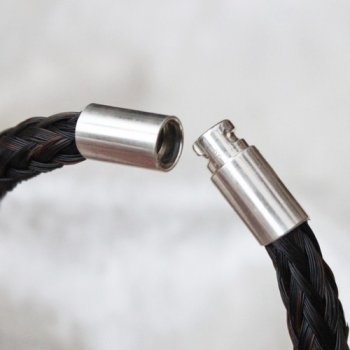 Armbandje van 16 strengetjes haren, zilveren buiskraalDiameter 5 mm, bajonetsluiting zilverLasergravering optioneel € 10,00- Geschikt vanaf polsmaat 15 cm Benodigde haarlengte ca. 40 cm
