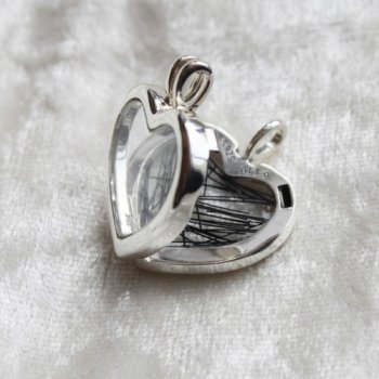 Zware zilveren hanger afm. 2,5 x 2,2 cmPaardenhaartjes gefixeerd in harsInclusief zilveren collier 45 of 50 cm(niet geschikt voor blond haar)